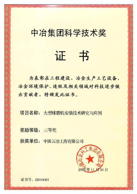 2009年通过中冶集团鉴定,达到国际先进水平。