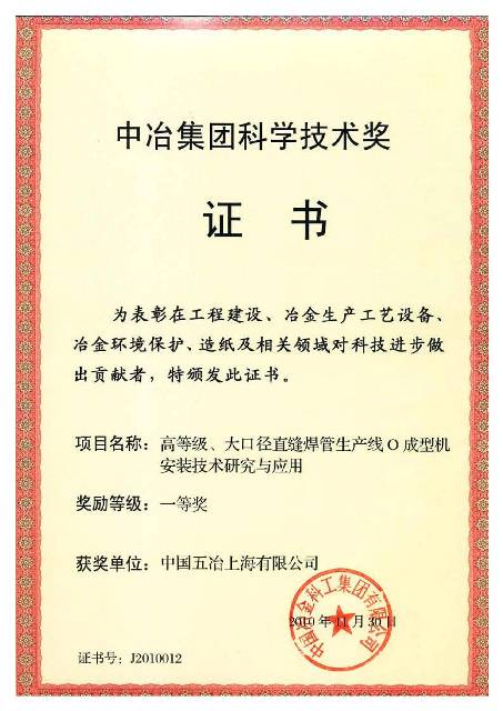 2009年通过中冶集团鉴定,达到国际先进水平。