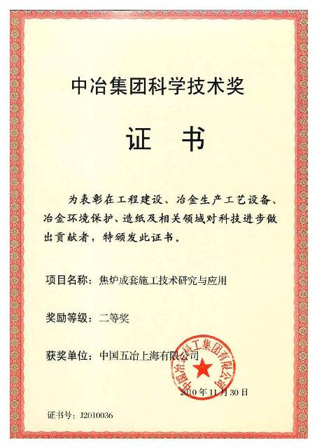 2009年通过中冶集团鉴定,达到国际领先水平。