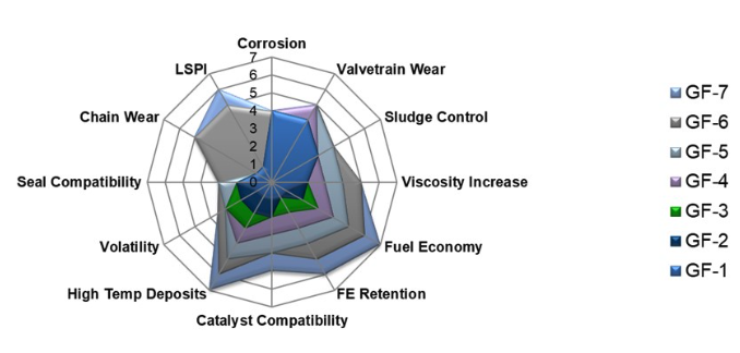 GF-7的主要變化是對程序VIE燃油經濟性和程序IIIH氧化和沉積控制方面的性能要求更嚴格。這些變化旨在幫助汽車制造商應對未來EPA排放目標的挑戰,并確保發動機因粘度或摩擦而導致的能量損失最小。同時,新設計的發動機能夠以更高的燃燒效率運行,并增加機油的耐熱性。