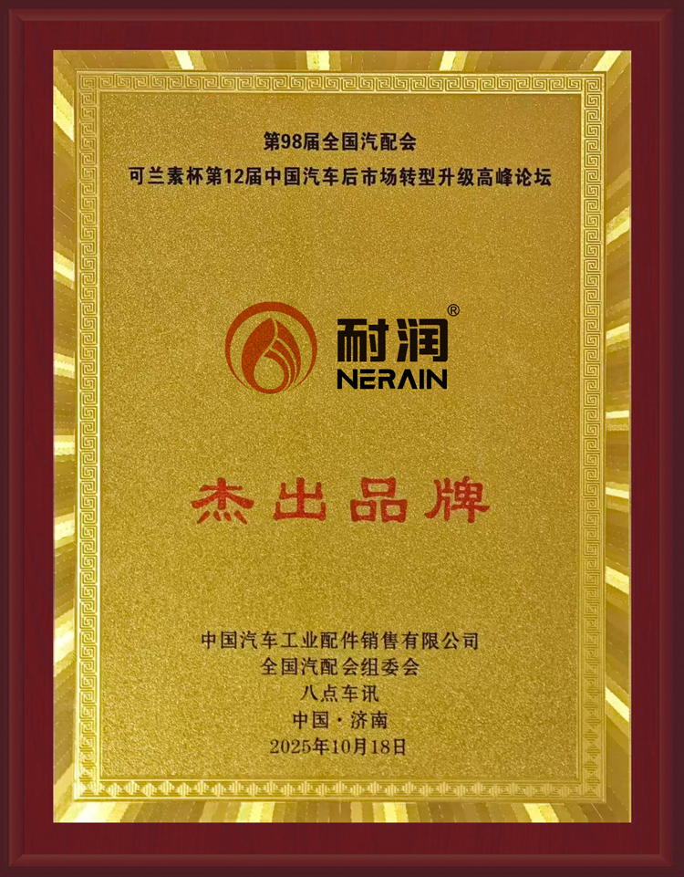 2025 年 10 月 18-20 日,第 98 屆全國汽車配件交易會在山東國際會展中心盛大啟幕,同期第 12 屆中國汽車后市場轉型升級高峰論壇同步召開。耐潤潤滑油憑借卓越的產品品質、領先的技術實力、廣泛的市場認可度以及持續的品牌影響力, 榮獲“杰出品牌”獎項!