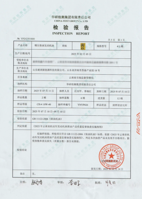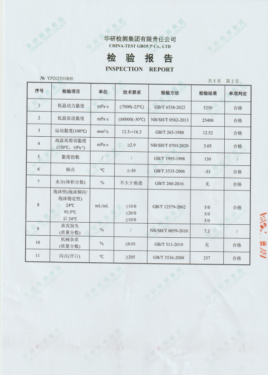 檢測(cè)環(huán)節(jié)由華研檢測(cè)集團(tuán)嚴(yán)格按照國家標(biāo)準(zhǔn)執(zhí)行,對(duì)低溫動(dòng)力黏度、低溫泵送黏度、運(yùn)動(dòng)黏度、高溫高剪切黏度、傾點(diǎn)、蒸發(fā)損失、閃點(diǎn)等多項(xiàng)核心指標(biāo)逐一核驗(yàn),最終出具的檢驗(yàn)報(bào)告明確判定產(chǎn)品合格,權(quán)威性與公正性毋庸置疑。