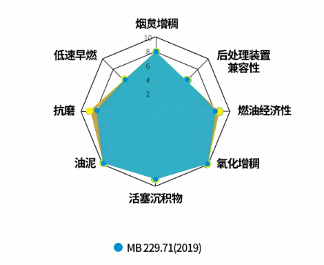 MB229.71規格對應的是0W-20低粘度長效發動機油,高溫高剪切(HTHS)介于2.6-2.9之間,蒸發損失(Noack)<11%,是低SAPS(低硫、低磷、低灰分)潤滑油,且與229.1相較約至少可提升3%燃油效率,以ACEA C5標準為基礎。