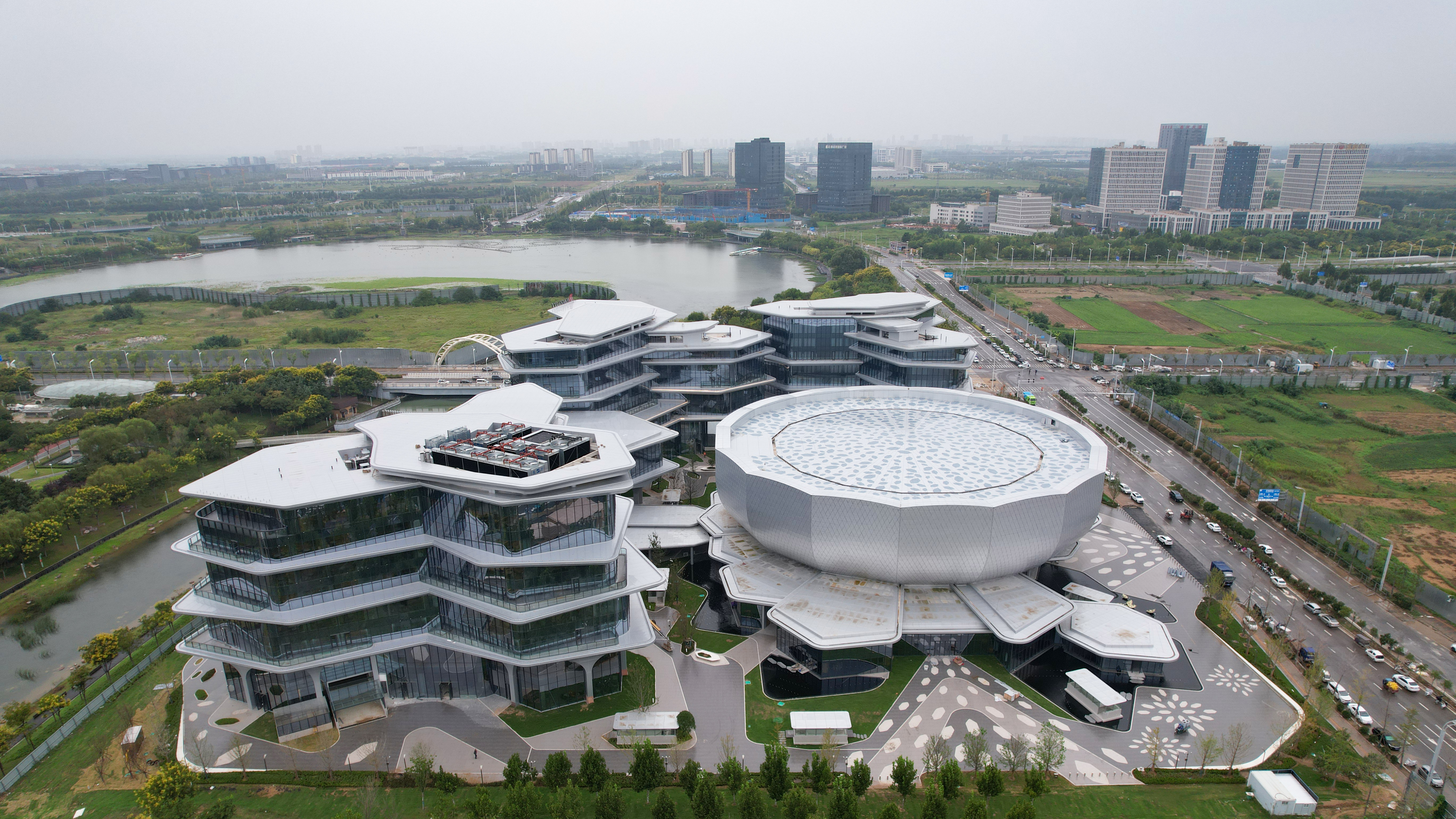 项目以国宝“莲鹤方壶”为设计灵感,立足于博大精深的中华文明,乘上科技腾飞的翅膀,以“莲”为意向, 形成以会议中心为“莲心”, 酒店及多种功能为“莲叶”, 向心汇聚、且各方绽放的建筑布局。抽象灵动的花瓣,又如医药分子,层层叠加扩散。